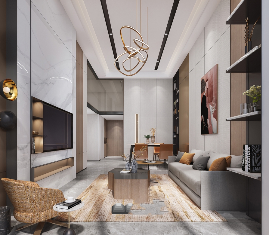2. 轻钢/木质龙骨石膏板 (客厅最常用)