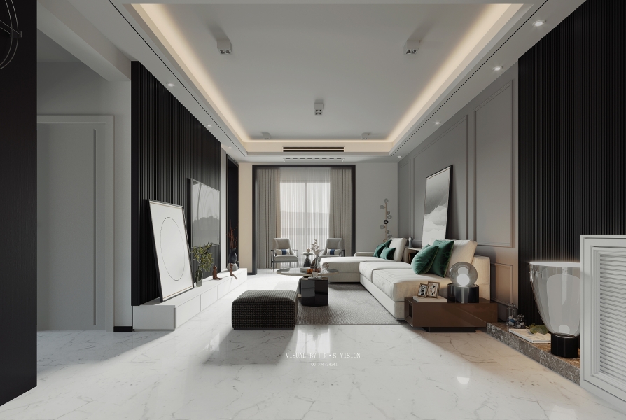 客厅作为家中的公共活动区域,是彰显家格调的地方,高级灰作为空间主色调,将灰色中的沉稳大气,不动声色的融入到空间中,形成一种腔调。